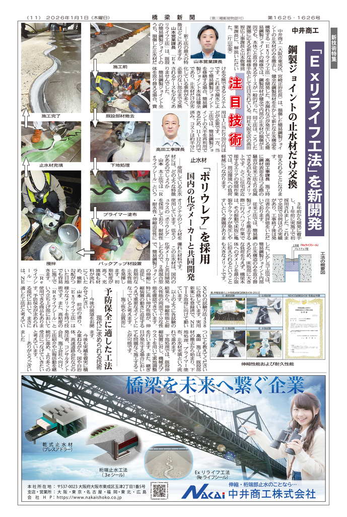この度、橋梁新聞 2026年1月号に弊社の会社紹介と技術力を特集した記事が掲載されました。